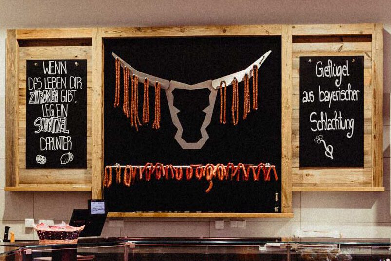 Unsere Rinder, Kälber und Lämmer beziehen wir von Landwirten aus den Landkreisen Bad Tölz und Weilheim. Diese werden in Antdorf geschlachtet. Unsere Schweine kommen von drei Vertragslandwirten aus dem Raum Erding und werden in Garmisch geschlachtet. Unser Geflügel kommt aus Ingolstadt vom Geflügelhof der Familie Schönacher. Das Wildfleisch beziehen wir direkt von Jägern aus der Region.